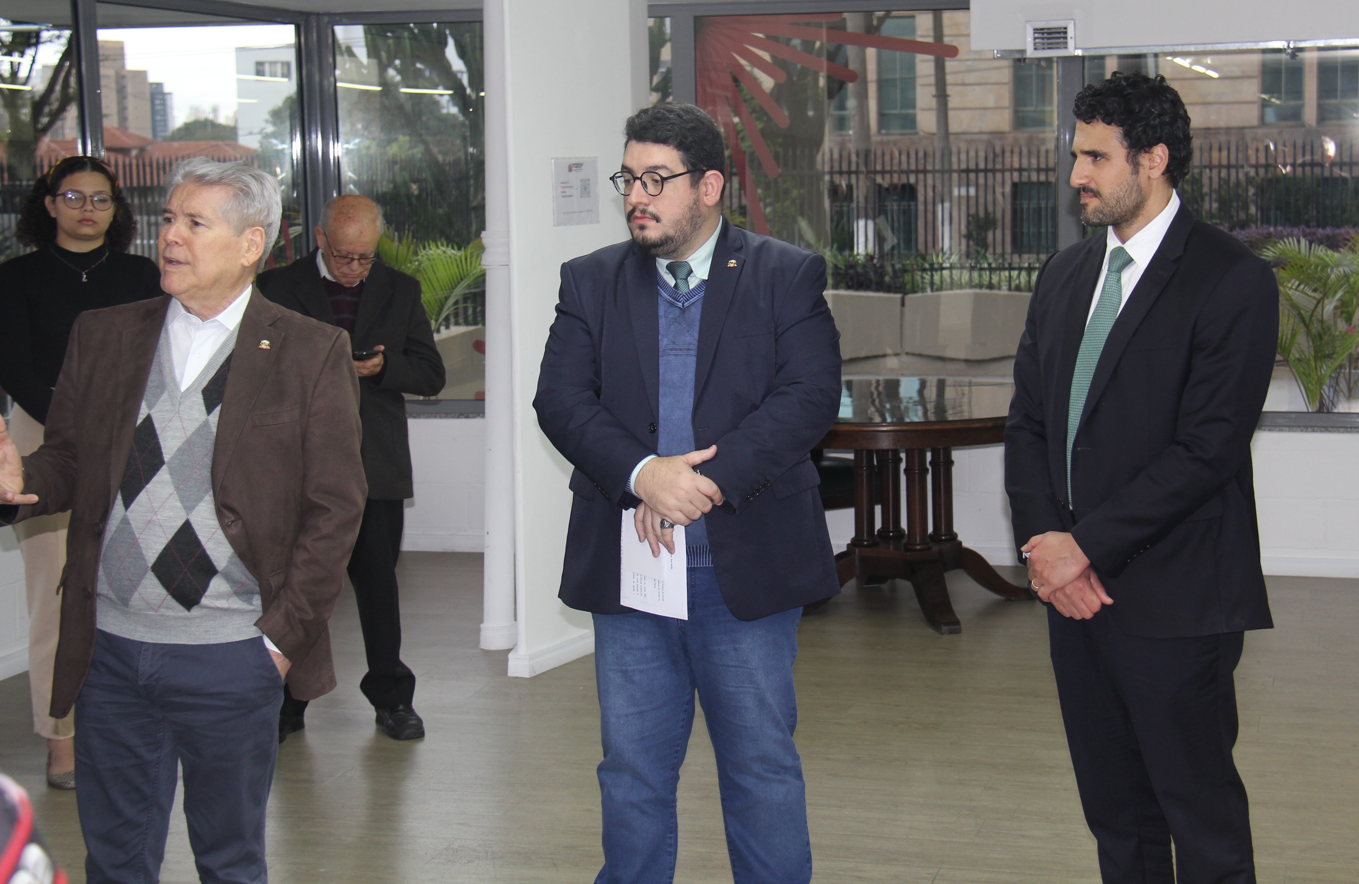 Na foto, da direita para a esquerda: Thiago Nicodemo, diretor do APESP; Fernando Martins, Diretor de Comunicação Social do TCE; Antonio Roque Citadini, presidente do TCE